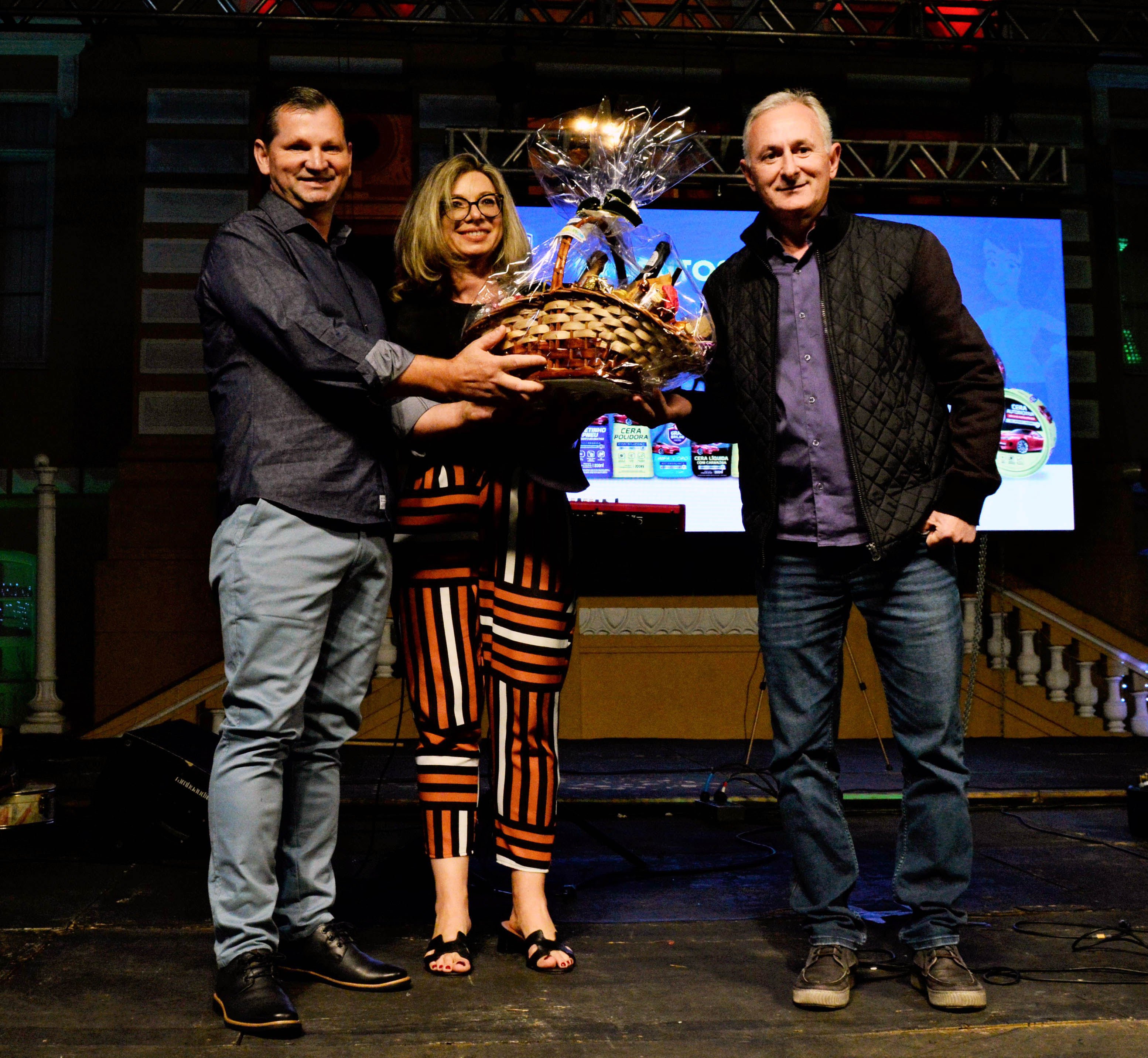 Como forma de eternizar o agradecimento, os dois entregaram uma cesta de presentes para Roni Kussler, sócio-diretor da Saif, empresa parceira e patrocinadora do EnCantos. "É uma satisfação muito grande ver a realização desse evento, depois de quase dois anos de incertezas. Muito bom poder ajudar nessa realização junto ao CIC, levar um pouco de alegria ao povo de Bento Gonçalves", disse ele, que também fez a entrega dos kits aos três espectadores sorteados durante a noite.