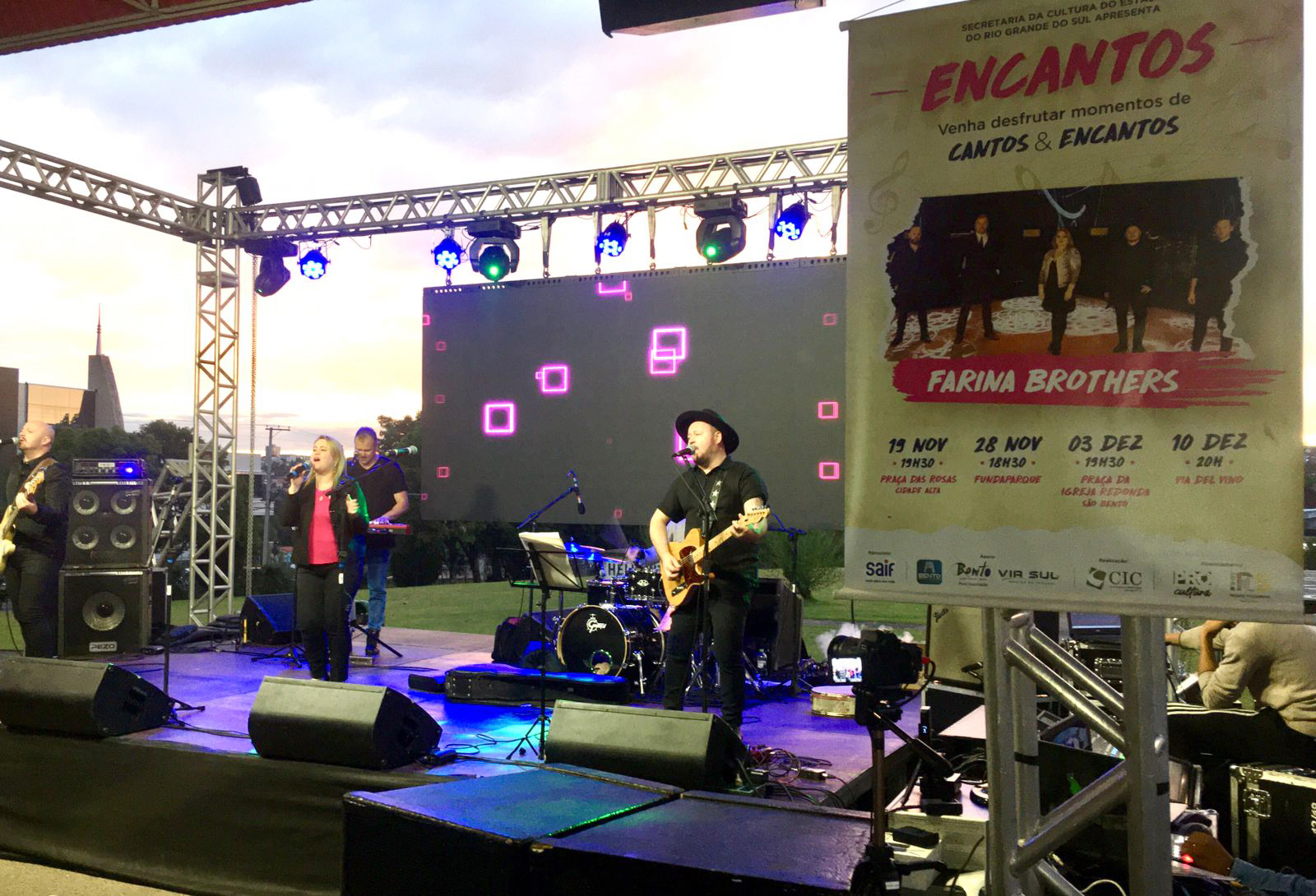 O EnCantos visita ainda mais duas praças em 2021: Achylles Mincarone (São Bento), no dia 3 de dezembro, às 19h30min, e a Via del Vino, no dia 10 de dezembro, às 20h. O projeto é viabilizado por meio do Pró-Cultura RS, através da Secretaria da Cultura do Estado do Rio Grande do Sul. A realização é do CIC-BG, com patrocínio de Saif e apoio da Prefeitura de Bento Gonçalves. A programação integra a agenda do Natal Bento deste ano.