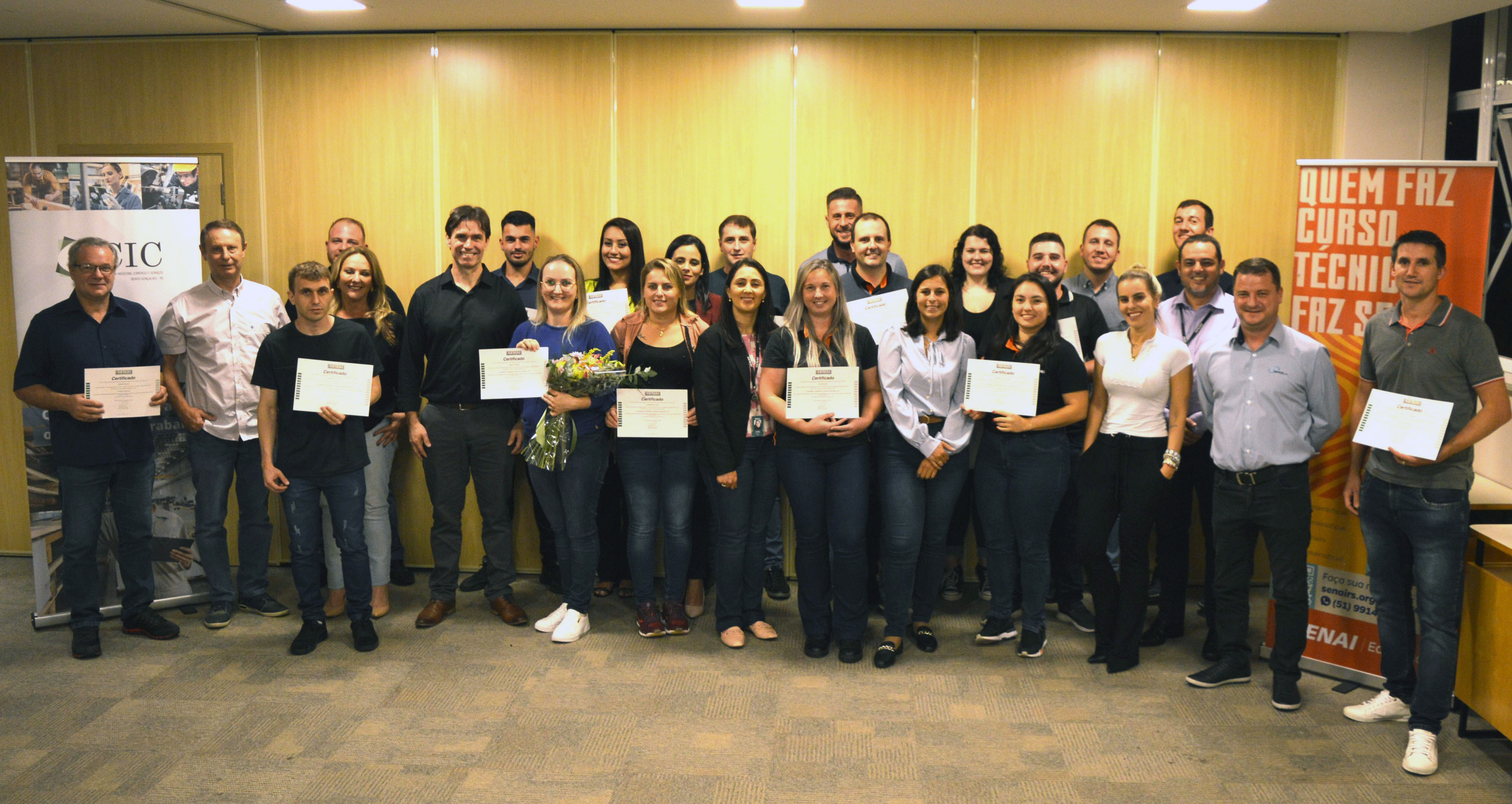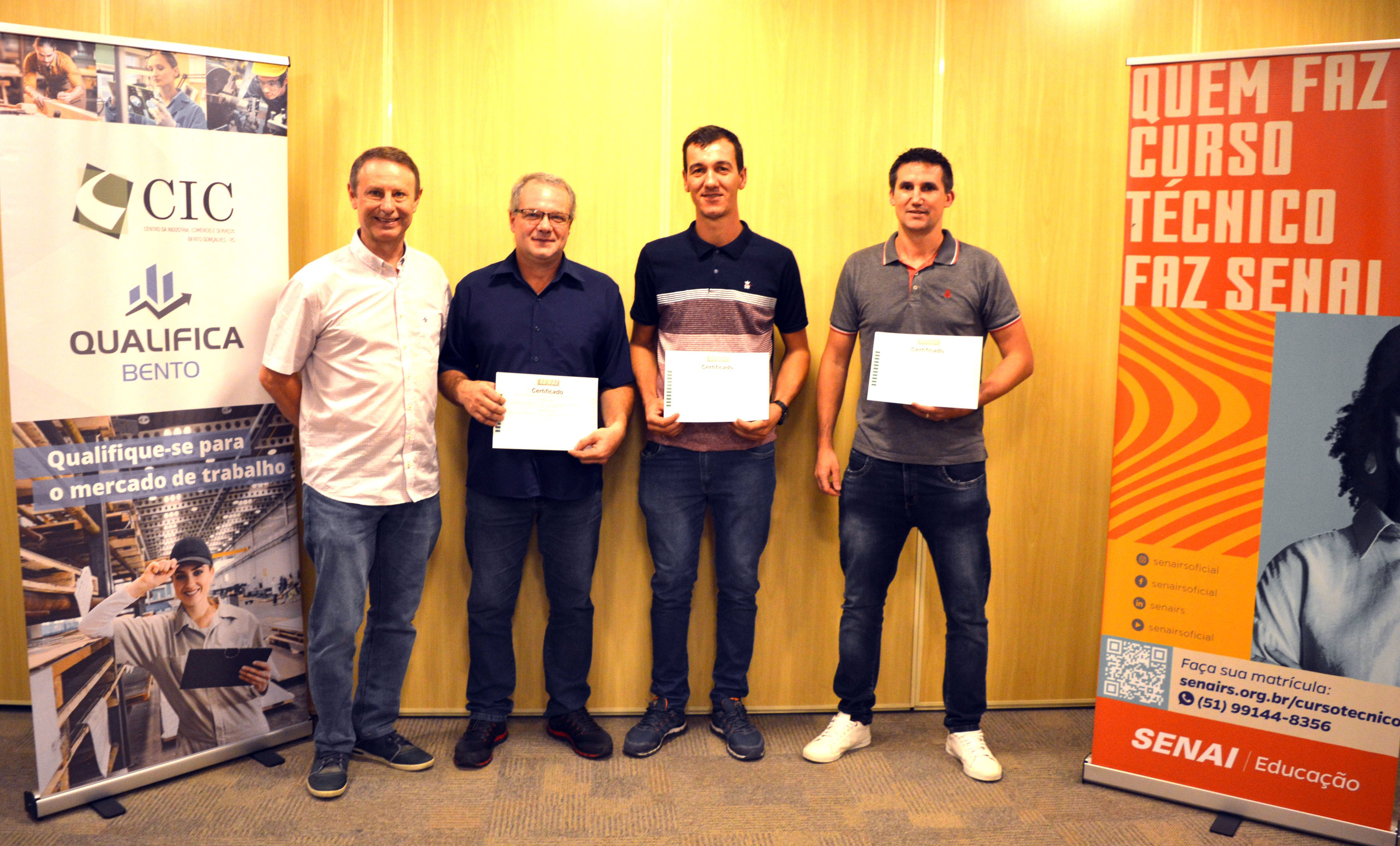 Também participaram da solenidade a coordenadora técnica de Educação Profissional do Senai, Aline Dutra, e a coordenadora do Qualifica Bento, Márcia Ariotti. As formações de PPCP, conduzida por Leonardo Rossetto, e de Automação Industrial, ministrada por Eliseu Wolke, foram cursadas por profissionais das empresas Multimóveis, Newsul, Metalúrgica De Toni, Todeschini, Modelo Matriz, Cinex, Zen Acessórios para Móveis, AL Componenti Industrial, Agomaq e Lupatech.