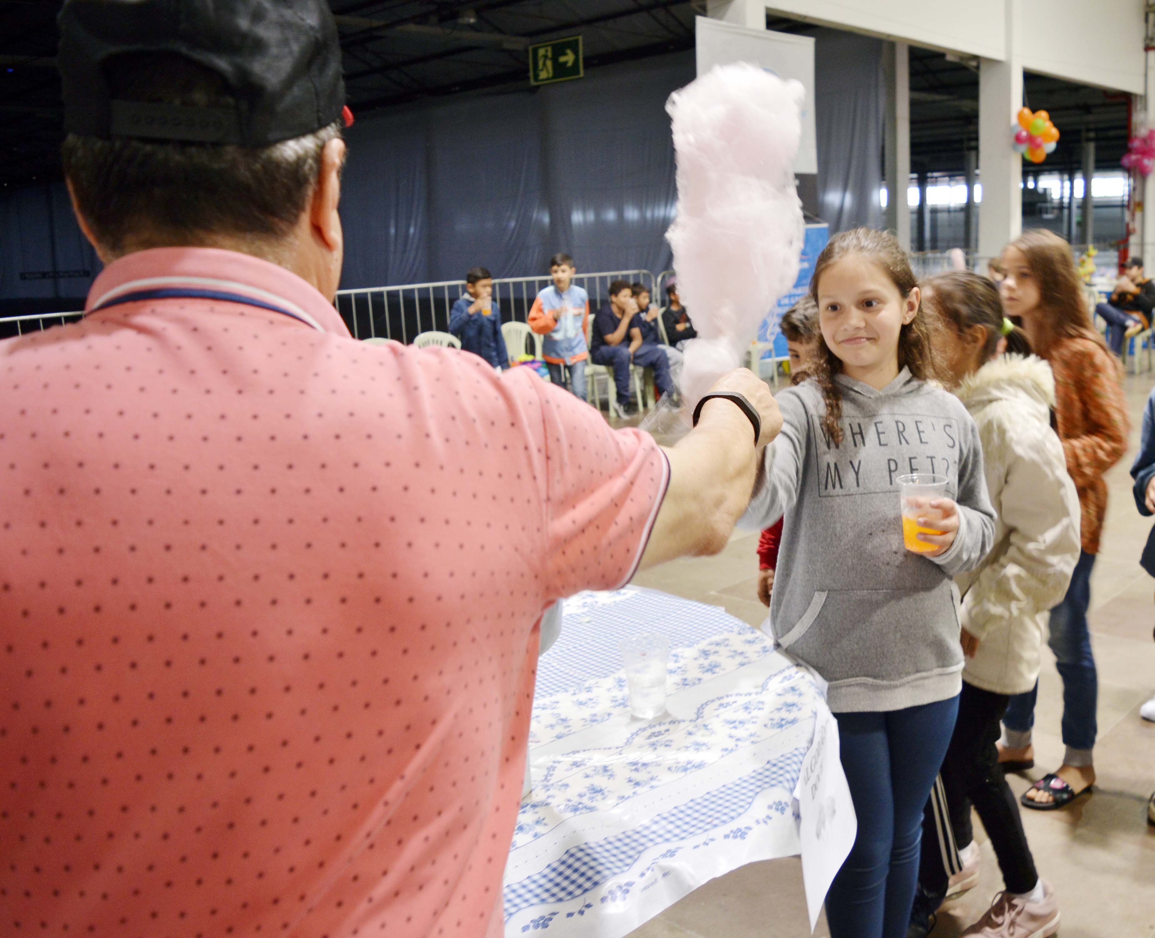 A ação solidária transformou o hall do Parque de Eventos em um verdadeiro reduto de diversões infantis, palco para brincadeiras, atividades recreativas com infláveis, animação com personagens de contos infanto-juvenis e, claro, guloseimas à vontade: pipoca, algodão-doce, cachorro-quente e refrigerante fizeram a alegria da garotada.