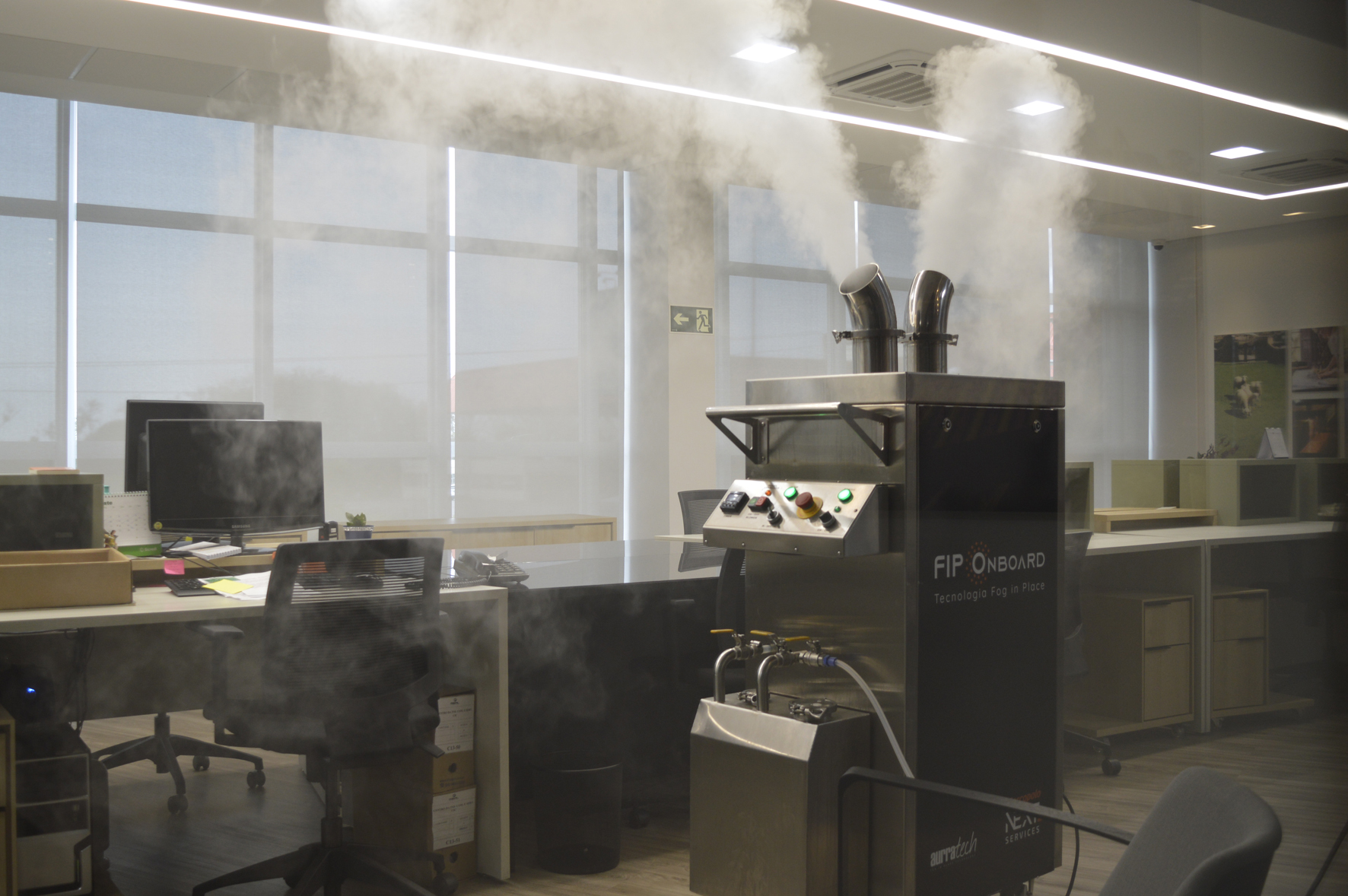 O processo ocorreu na sala de reuniões e, também, no ambiente onde atuam os profissionais da equipe. Pela tecnologia fog in place, os ambientes ficaram livres da ação de bactérias e vírus – inclusive o responsável pela transmissão da covid-19. A proteção tem duração de 72 horas, período em que as superfícies ficam protegidas por uma solução biocida, que forma uma espécie de filme capaz de neutralizar a ação dos microrganismos.