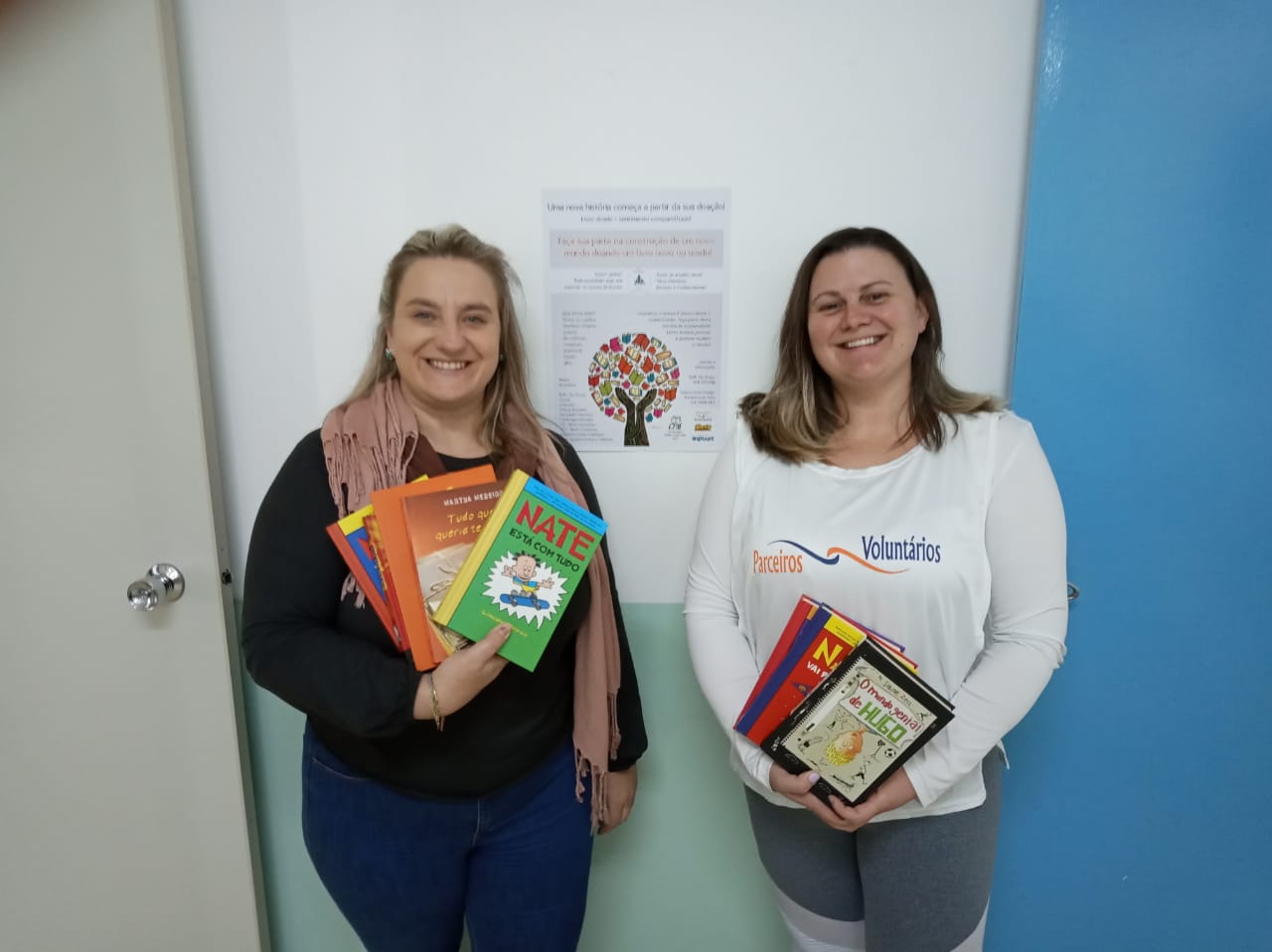 Outra iniciativa contemplada pelo Desafio Voluntário traduziu a esperança de um futuro melhor por meio da educação: a arrecadação e entrega de livros didáticos à Escola Municipal de Tempo Integral São Roque – Professora Nilza Côvolo Kratz.