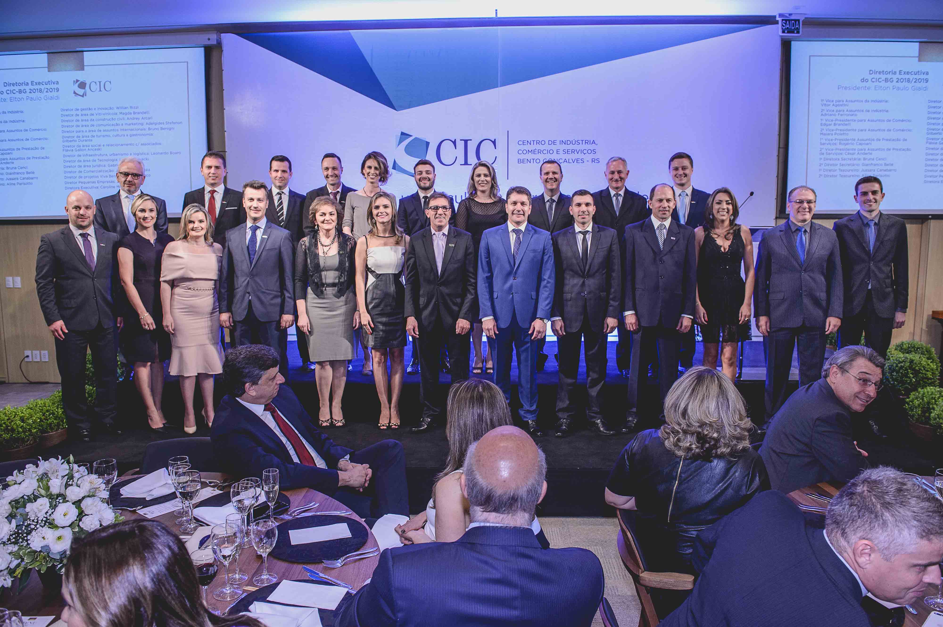 Em seu primeiro pronunciamento na condição de presidente do Centro da Indústria, Comércio e Serviços de Bento Gonçalves, Elton Gialdi foi categórico em afirmar: sua diretoria vai trabalhar pela criação de oportunidades de negócios, de parcerias, de relacionamento e de qualificação. “Assumo com o desafio de tornar a entidade ainda mais forte e atrativa, capaz de agregar novos associados. Para tanto, temos o compromisso de fazer um exercício intenso de gestão, inovação e criatividade, encontrando formas de efetivamente contribuir para o desenvolvimento das indústrias, do comércio e dos prestadores de serviço de Bento Gonçalves. Acredito que as oportunidades não surgem ao acaso. Somos nós quem as criamos”, disse. A solenidade de posse da diretoria executiva do CIC-BG, gestão 2018/2019, ocorreu na noite de 14 de dezembro, na nova sede da entidade, prestigiada por mais de 250 pessoas.