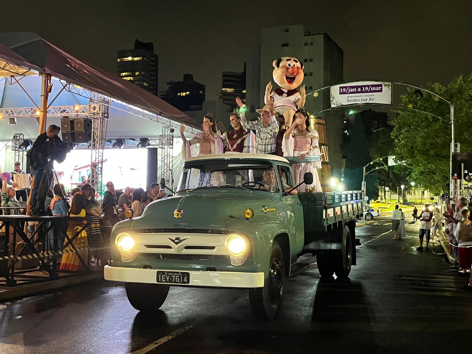 A passagem do carro alegórico da Fenavinho trouxe um pouco da festa que aguarda a população nos próximos meses e serviu para aplacar a saudade do evento, que terá sua 18ª edição a ser celebrada nos próximos meses, com a distribuição de vinho ao público.