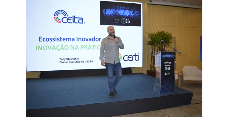 "Inovação na Prática" foi o tema da palestra de Tony Chierighini, diretor executivo da Celta, empresa de Santa Catarina. "Para onde nós vamos e o que queremos? Isto é o que precisa ser respondido porque, para inovar, é preciso ter propósito, inspiração e certeza do que estamos fazendo para que o nosso negócio atinja um patamar de desenvolvimento", comentou. Citando exemplos da evolução tecnológica, cases de inovação e modernização digital em empresas, instituições de ensino e órgãos de governo de Santa Catarina, o executivo assegurou que o desenvolvimento de empresas por meio da inovação passa, necessariamente, pelas pessoas. "Um ecossistema de inovação começa no meio empresarial, mas passa pela comunidade, pelos recursos financeiros e pessoais, pelo habitat virtual, além de fatores locais e externos. E em todos eles estão as pessoas que farão essa roda girar".