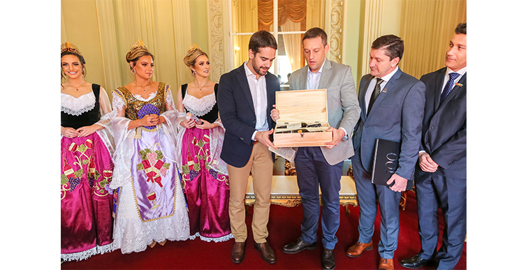 O Governador do Estado do Rio Grande do Sul, Eduardo Leite, confirmou sua presença na solenidade após receber o convite oficial na manhã de quarta-feira (29). Uma comitiva composta pelo prefeito de Bento Gonçalves, Guilherme Pasin; pelo presidente do Centro da Indústria, Comércio e Serviços de Bento Gonçalves, entidade promotora da feira e da festa, Elton Paulo Gialdi; pelo diretor-geral da ExpoBento 2019, Rogério Capoani; pelo coordenador do Comitê da Fenavinho, Diego Bertolini; pelo secretário municipal de Turismo de Bento Gonçalves, Rodrigo Parisoto; e pelo secretário municipal de Cultura, Evandro Soares, esteve no Palácio Piratini compartilhando detalhes da programação.