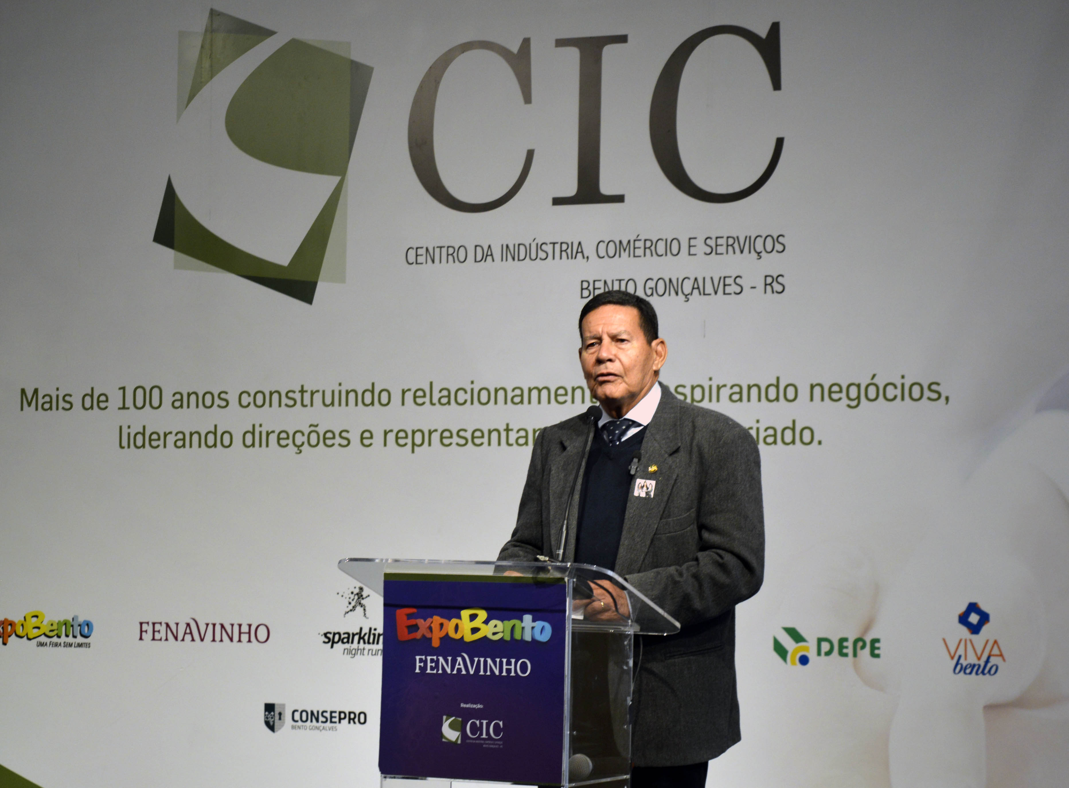 Cumprindo agenda em Bento Gonçalves, o senador Hamilton Mourão visitou a 31ª ExpoBento e a 18ª Fenavinho nesta quinta-feira (15), e encerrou sua passagem pela cidade palestrando no Centro da Indústria, Comércio e Serviços de Bento Gonçalves (CIC-BG).