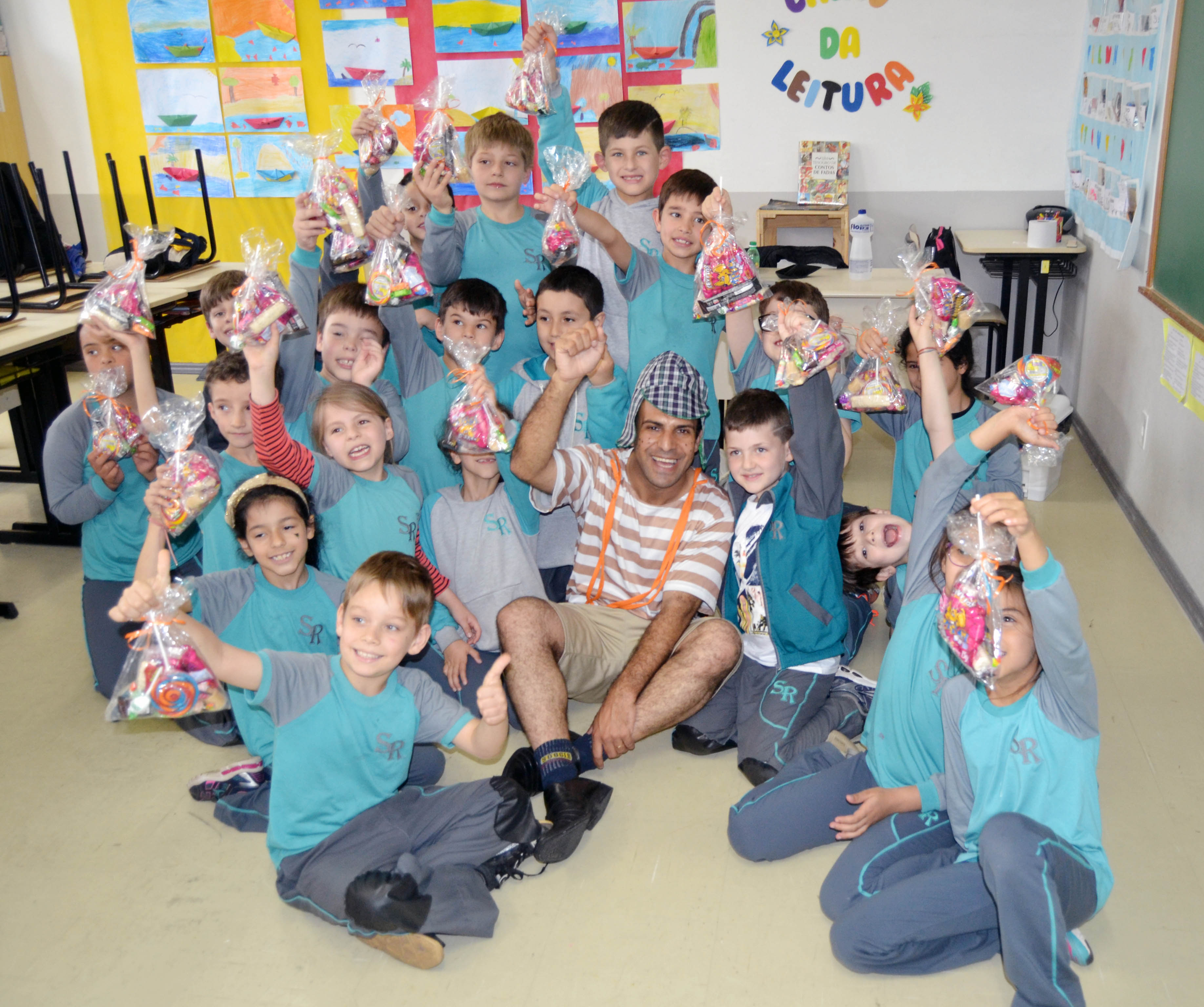 Na quarta (11), a primeira escola em turno integral de Bento Gonçalves recebeu a visita da Parceiros Voluntários com a presença de um personagem bem conhecido do universo infantil de pelo menos duas gerações. Ao lado do personagem Chaves, a equipe da ONG distribuiu guloseimas a 221 alunos do 1º ao 8º ano da Escola São Roque, com idades entre seis e 13 anos. “Ver esse sorriso todo não tem preço. O que está em jogo não é o valor e sim o gesto carinhoso”, comentou a diretora, Maria Inês Accorsi. A visita se estendeu, ainda, a outras duas entidades na quarta-feira. Quinze alunos da Associação dos Surdos e outros 21 da Associação do Desenvolvimento do Down foram contemplados com o kit de balas e doces.
