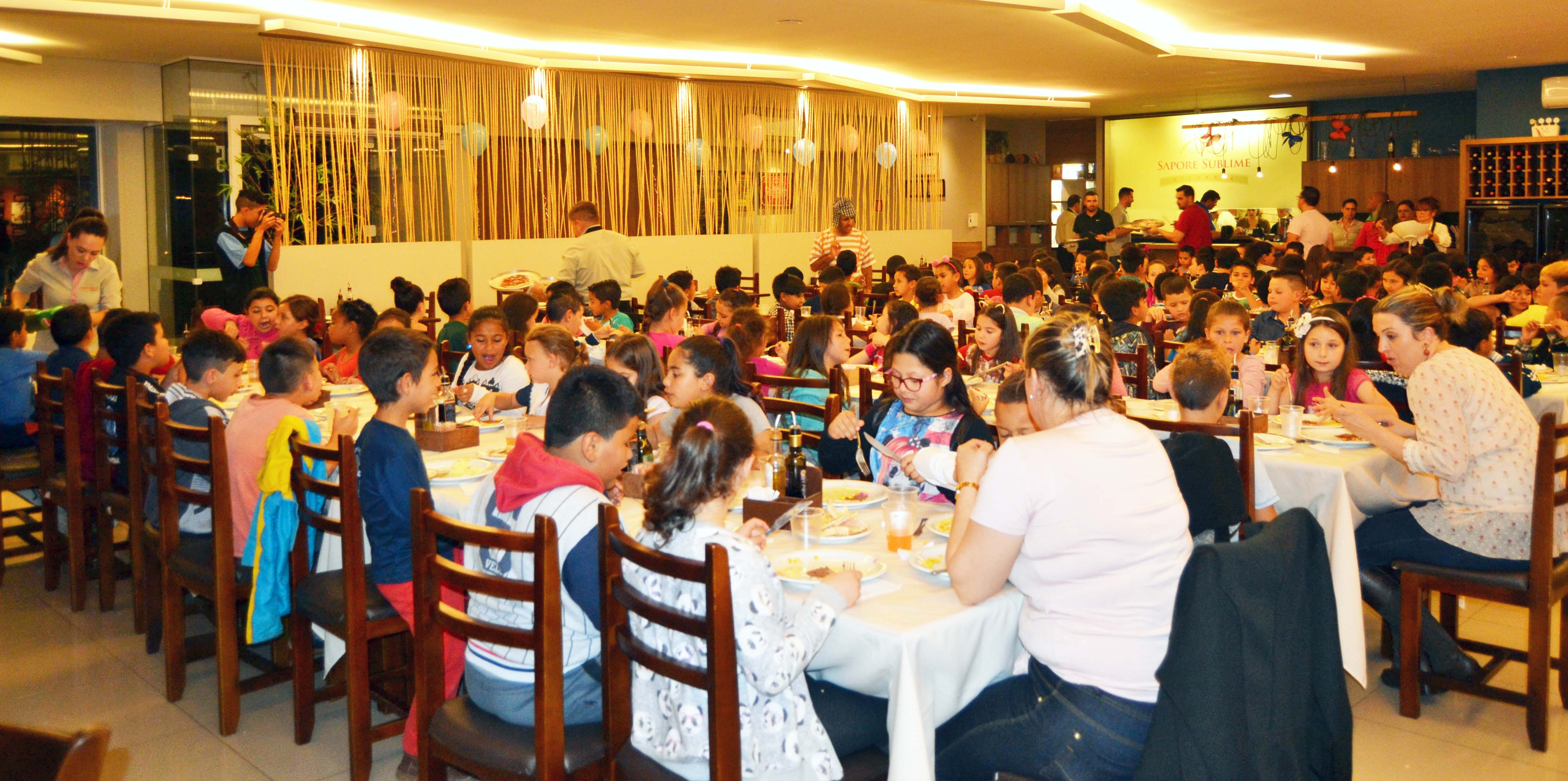 Logo no início da semana, 215 estudantes das escolas Félix Faccenda e Ulysses Leonel de Gasperi, ambas do Municipal, foram levados a um rodízio de pizza na Sapore Sublime – muitos deles estavam indo pela primeira vez a um restaurante desse tipo. A iniciativa foi encabeçada empresários, que também montaram kits de doces e balas distribuídos em escolas e entidades nos últimos dias.