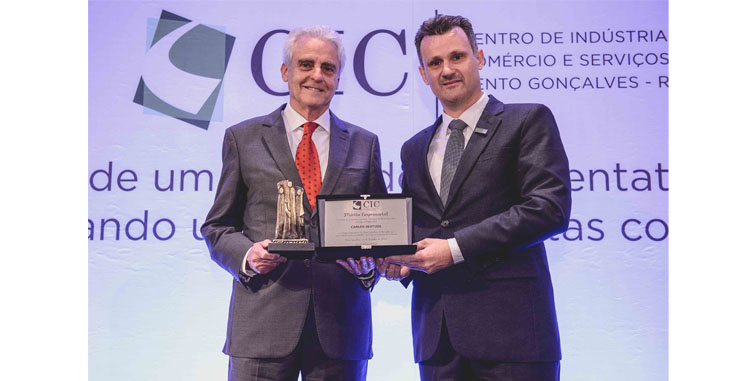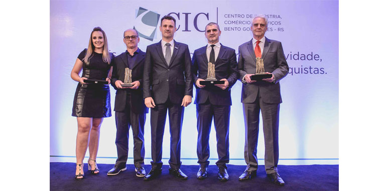 Os empresários que foram expoente de empreendedorismo, destacando-se em seus segmentos de atuação nos últimos dois anos, receberam o merecido reconhecimento durante a entrega do Mérito Empresarial de Bento Gonçalves 2017. A premiação revela os nomes mais lembrados pelos associados do CIC-BG, que, por meio do voto, elegem os contemplados. Nesta edição, o troféu Mérito Empresarial – categoria Indústria, foi conferido ao empresário Carlos Bertuol, diretor da Meber Metais. Já no segmento Comércio, a outorga coube a Daniel Ferrari, da BG Ferramentas. Na categoria Serviços, o agraciado foi Valdomiro Cruzeta, da empresa Bento Refeições.