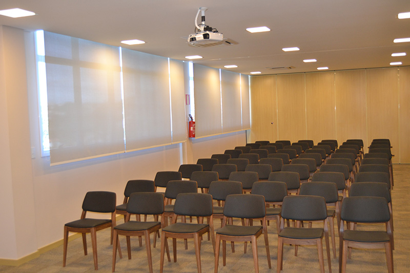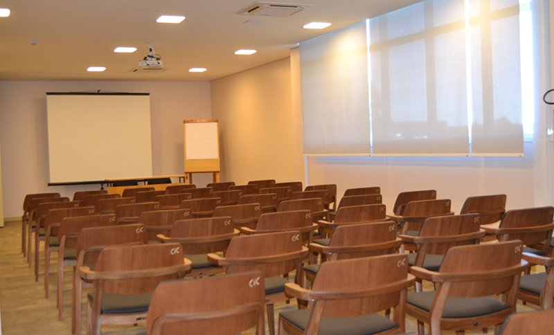 Em frente ao Salão de Eventos, um outro espaço, dedicado a encontros como palestras e reuniões, também é disponibilizado pelo CIC-BG. Na verdade, são duas salas – cada uma com cerca de 100m² e capacidade para receber até 70 pessoas – que podem se transformar em quatro graças ao sistema deslizante das paredes. Cada uma dessas salas está equipada com três aparelhos de ar-condicionado, um projetor e um telão de 150 polegadas. O sistema de som está interligado com o Salão de Eventos.