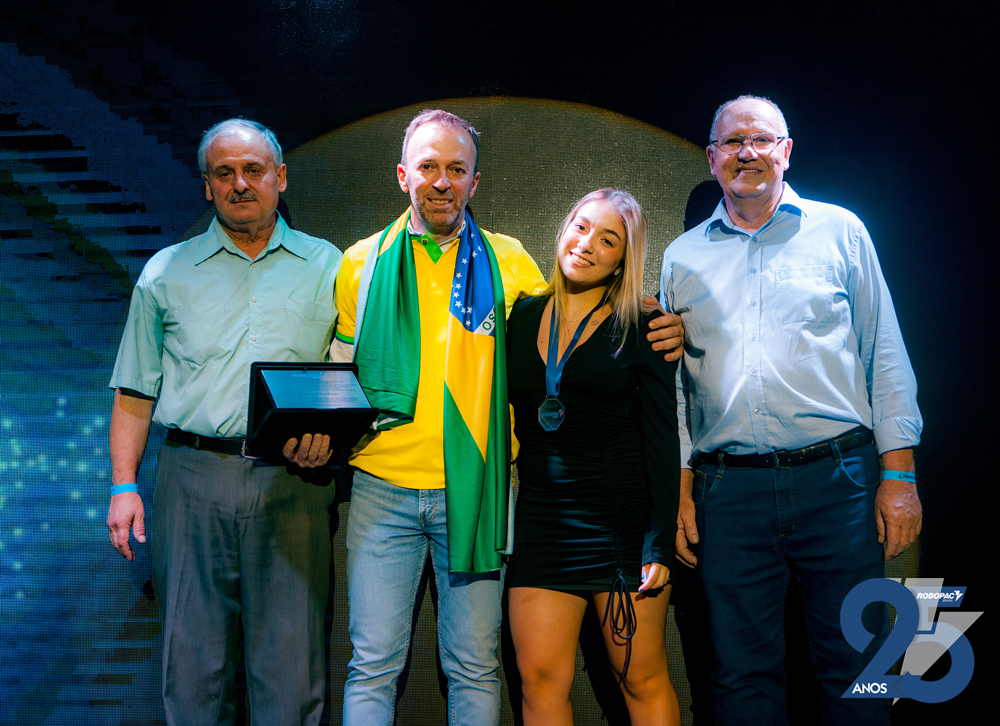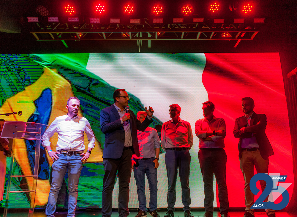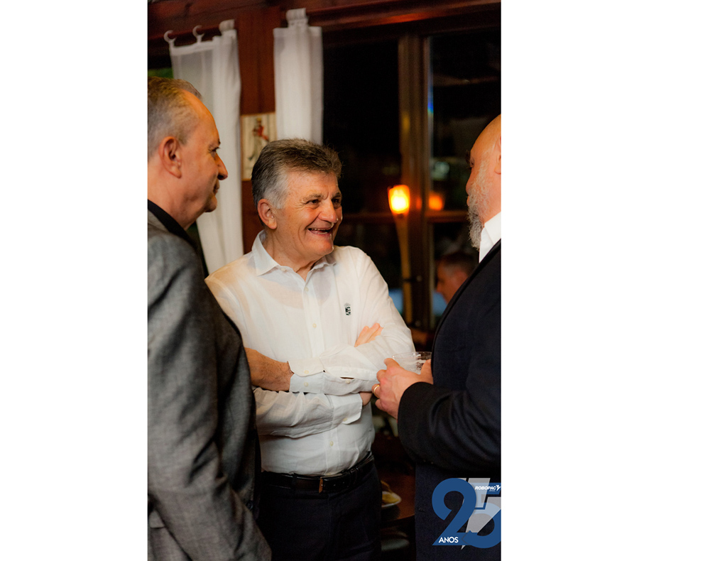 Para assinalar os 25 anos de fundação, a direção da Robopac Brasil comemorou com colaboradores e familiares, representantes e distribuidores, em uma festa realizada dia 31 de março no Centro de Eventos Bangalô. Entre as cerca de 400 pessoas estavam autoridades como o prefeito de Bento Gonçalves, Diogo Siqueira, os deputados federais, Marcel Van Hatten e Maurício Marcon, o deputado estadual, Guilherme Pasin (representando a presidência da Assembleia Legislativa do Estado) e o vice-prefeito de Bento, Amarildo Lucatelli.