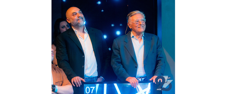 O presidente do Grupo Aetna, Alfredo Aureli, também esteve na festa dos 25 anos da Robopac Brasil, ladeado pelo CEO do Grupo Aetna, Enrico Aureli General.