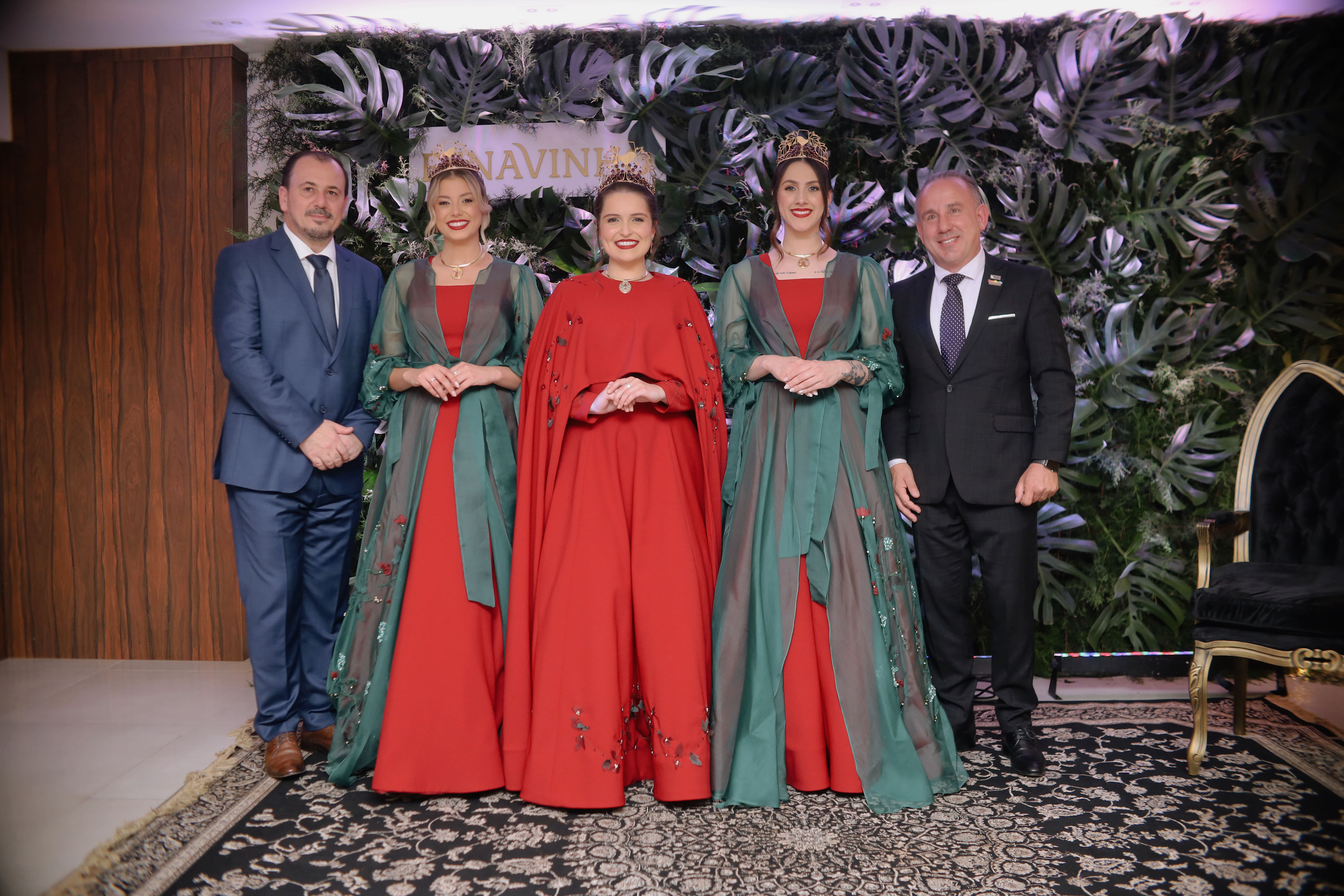 Oficialmente coroada durante a Noite de Gala dos Vinhos & Espumantes, a corte da 20ª Fenavinho estreou, também, os trajes oficiais para esta edição na celebração que reuniu cerca de 380 participantes no Dall'Onder Grande Hotel. A Imperatriz do vinho, Laura Caroline Pouluk Strozak, e damas de honra, Yasmin Luiza de Lima Barbacovi e Graziele Miszevski apresentaram suas vestimentas e acessórios que chegam em uma versão surpreendente, unindo tradição e modernidade.
