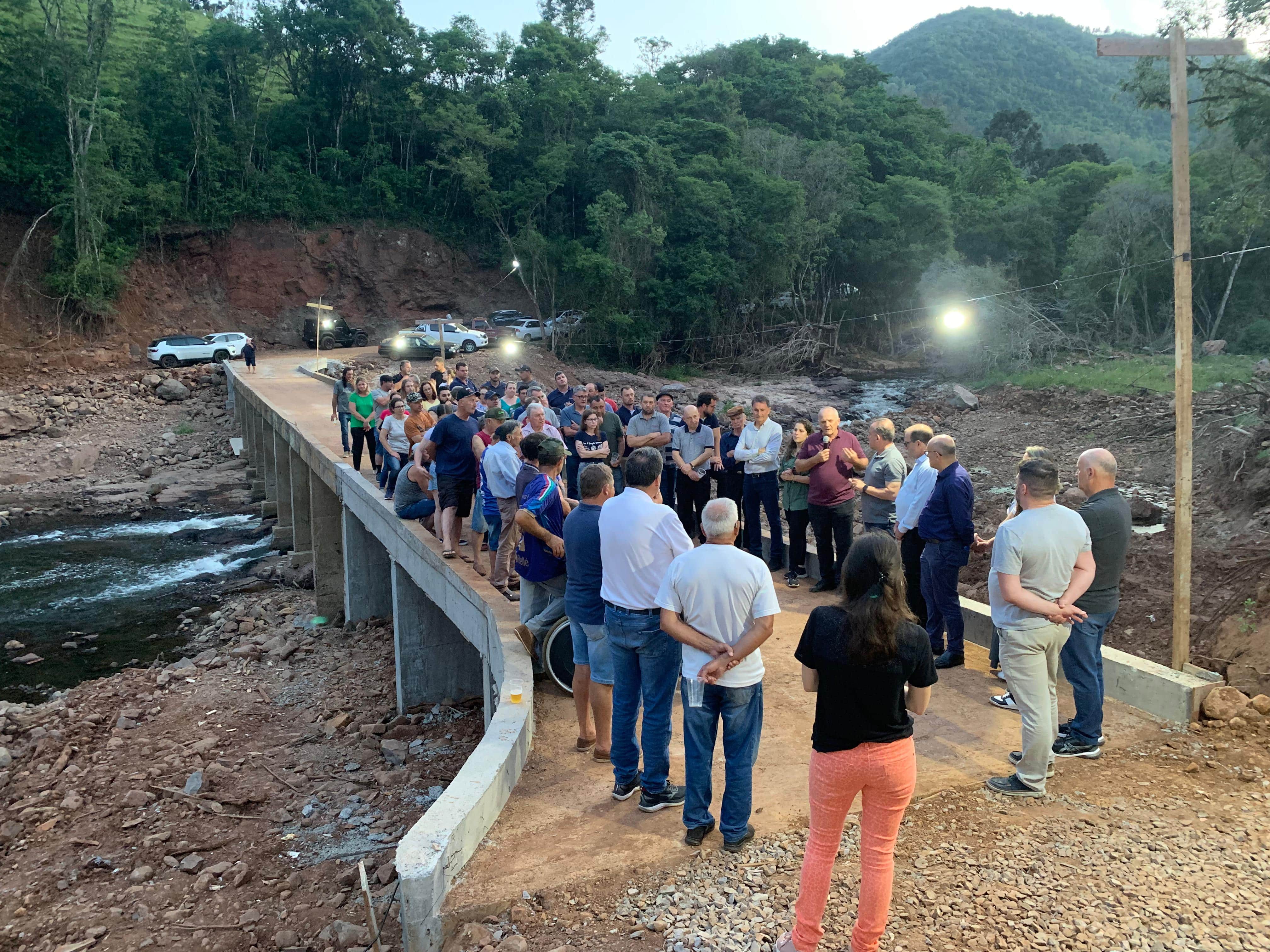 O prefeito de Pinto Bandeira, Hadair Ferrari, destacou a parceria que oportunizou uma volta à normalidade às famílias da comunidade. "Temos muito a agradecer a todos que se envolveram nesse trabalho. Com essa obra, não precisamos mais dar a volta", comentou Ferrari, se referindo aos caminhos alternativos que os moradores precisavam utilizar. Representante da comunidade, o presidente da Vinícola Aurora, Renê Tonello, agradeceu ao Unidos por Bento e às prefeituras de Pinto Bandeira e de Bento Gonçalves, representada no ato pelo secretário de Obras, Carlos Quadros. "Somos um povo forte. A todos que, de uma forma ou de outra, colocaram o seu tempo e a sua capacidade para que hoje estivéssemos aqui entregando esta obra, muito obrigado. Só quem passa pelo que passamos sabe o quanto foi complicado", disse Tonello, emocionado. A ponte reconstruída deve receber o nome de Catharina Rizzardo Bellé, uma das vítimas deixadas pelas fortes chuvas na localidade.